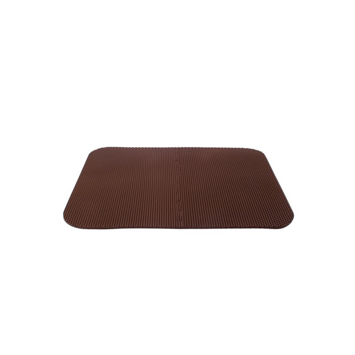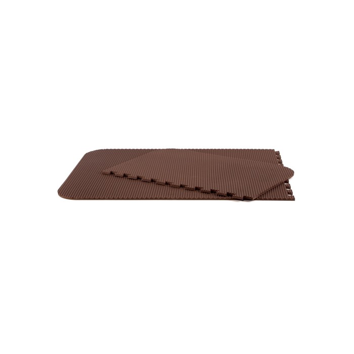 Материал ЭВА (этиленвинилацетат) не впитывает воду, не боится мороза, устойчив к воздействию бытовой химии и дорожных реагентов, не имеет запаха и абсолютно безвреден, так как имеет допуск для контакта с пищевыми продуктами и гигиенический сертификат. Можно вырезать и уложить по месту будущей эксплуатации.