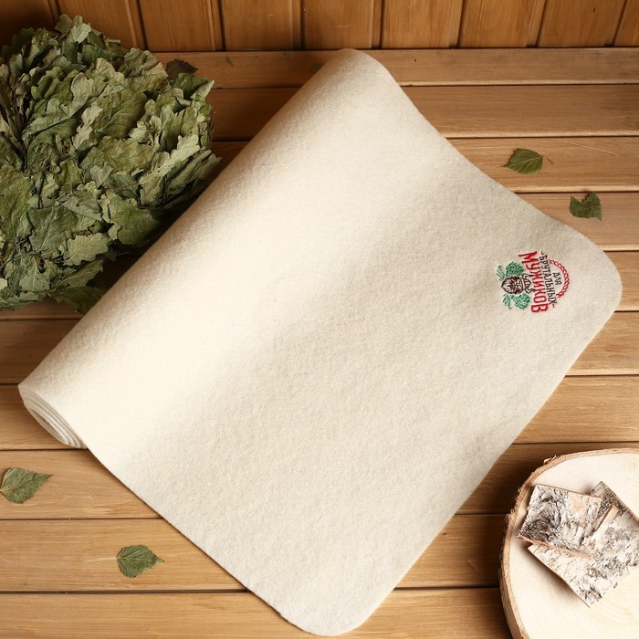 Коврик - лежак для бани и сауны с вышивкой «Для брутальных мужиков», 150×50 см, полиэфир 70%, шерсть 30%, светлый, «Банная забава»