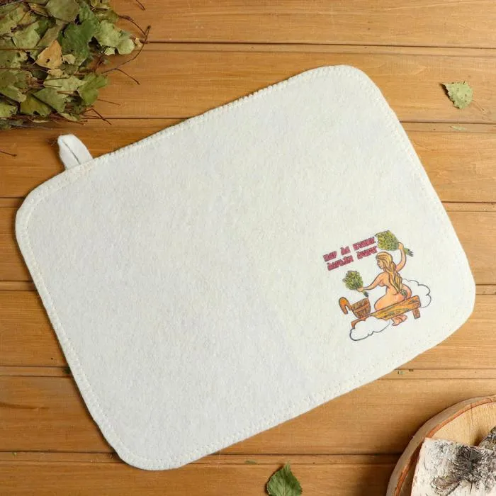 Коврик - сидушка для бани и сауны с принтом «Пар да веник дороже денег», 38×25 см, полиэфир 70%, шерсть 30%, «Добропаровъ»