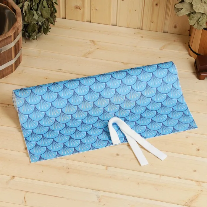 Лежак для бани с принтом "Водяной дракон" в чехле, 50х150см, голубой