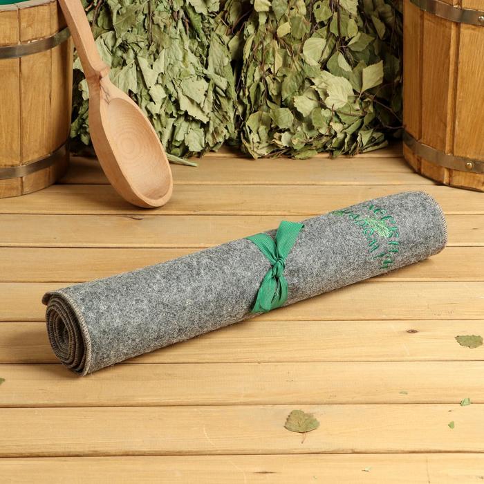 Коврик - лежак для бани и сауны «С лёгким паром», шерсть, полиэстер, серый, «Добропаровъ»