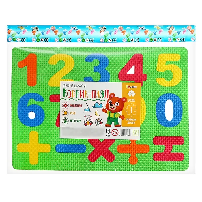 Коврик-пазл «Яркие цифры», цвета МИКС — Характеристики