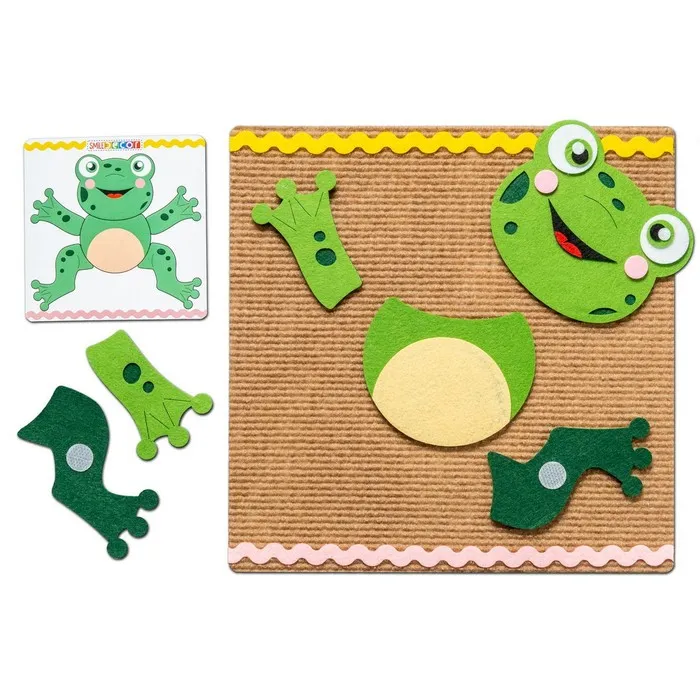 Коврик-пазл «Лягушка» — это увлекательная и полезная игрушка для детей. Он не только развивает мелкую моторику и координацию движений, но и позволяет ребёнку весело провести время.