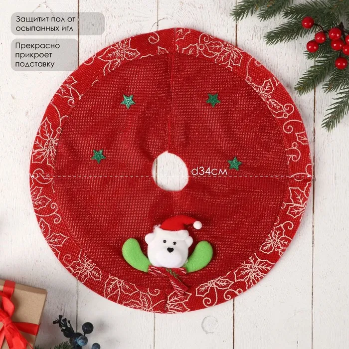 Этот новогодний коврик с изображением мишки в звёздах станет уютным и ярким дополнением праздничного интерьера. Диаметр — 34 см, он выполнен в красных тонах, что создает атмосферу тепла и уюта. Такой аксессуар отлично подойдет для украшения входной зоны, под ёлкой или в центре праздничной комнаты, подчеркивая тематику Нового года и зимних праздников.