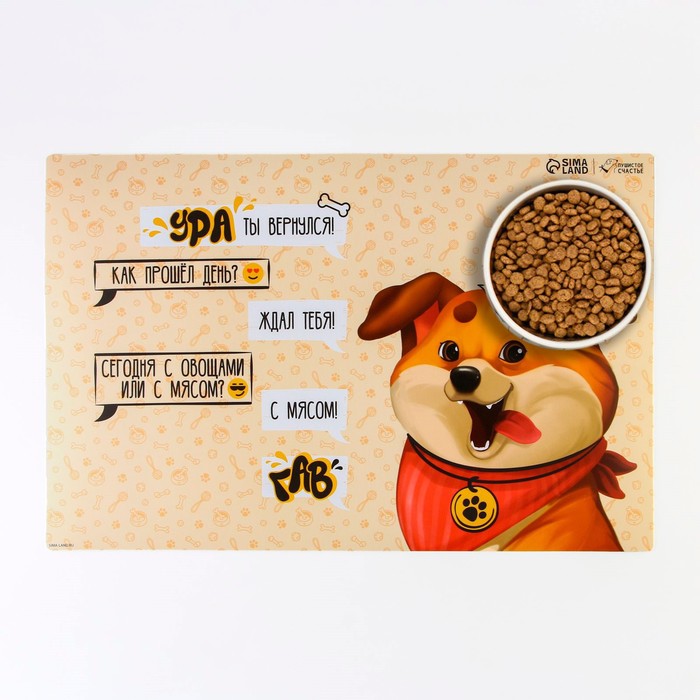 Коврик под миску нескользящий «Ура, ты вернулся», 43х28 см
