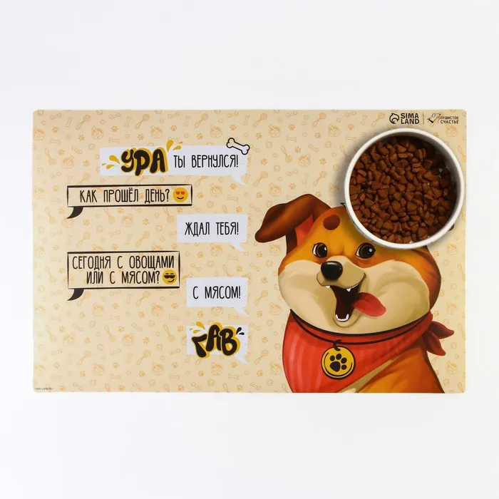 Коврик под миску нескользящий «Ура, ты вернулся», 43х28 см — Характеристики
