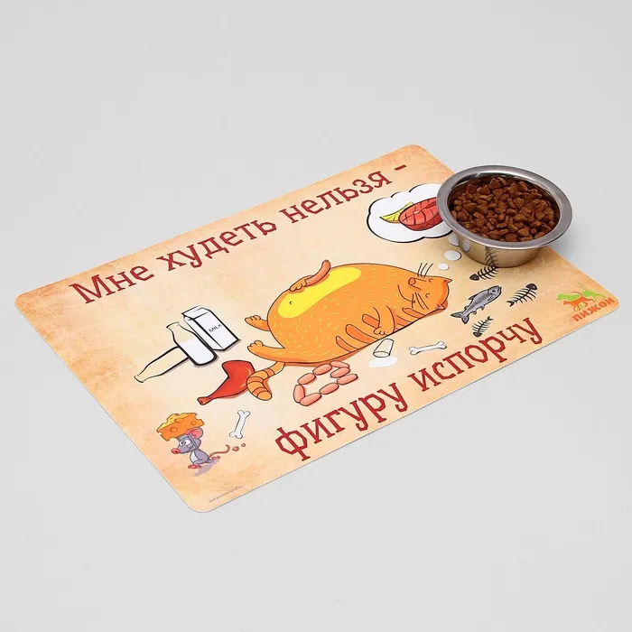 Коврик под миску "Пижон" с нескользящим основанием 43 х 28 см "Худеть нельзя" — Характеристики