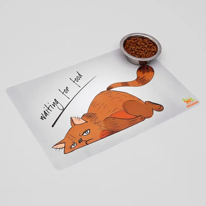 Коврик под миску "Пижон" с нескользящим основанием 43 х 28 см "Waiting for food" — Характеристики