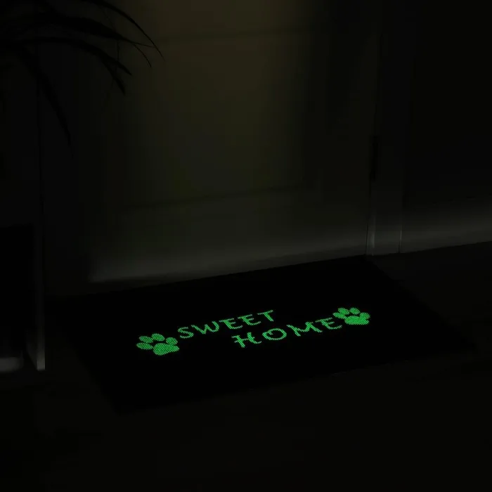 Коврик придверный Доляна Sweet home, 50×80 см, влаговпитывающий, светящийся в темноте, чёрный — Характеристики