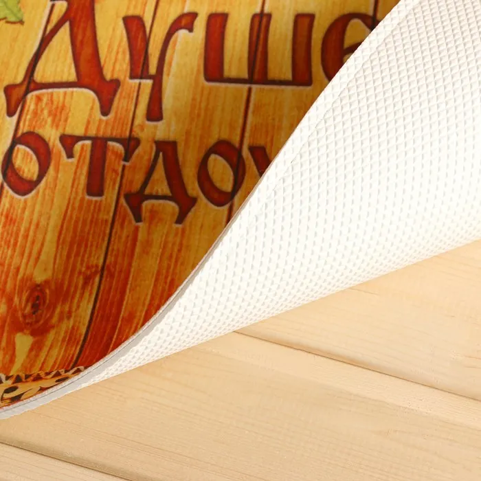 Яркий и оригинальный Коврик придверный "Душевно отдохнуть!", 60 х 40 см пошит из велюра — нежной на ощупь ткани. Снизу резиновая прослойка. Благодаря этому изделие не будет скользить.