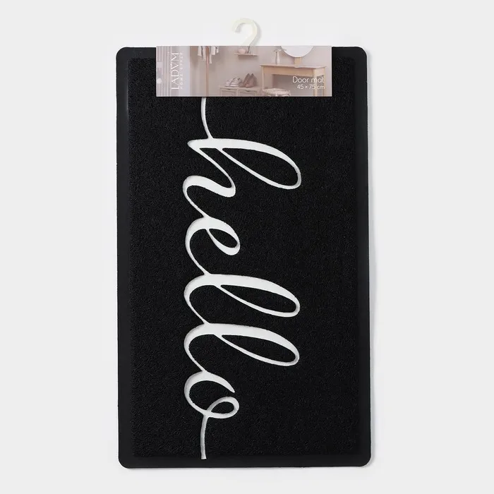 Коврик придверный LaDо́m Hello, 45×75 см, чёрный — Характеристики