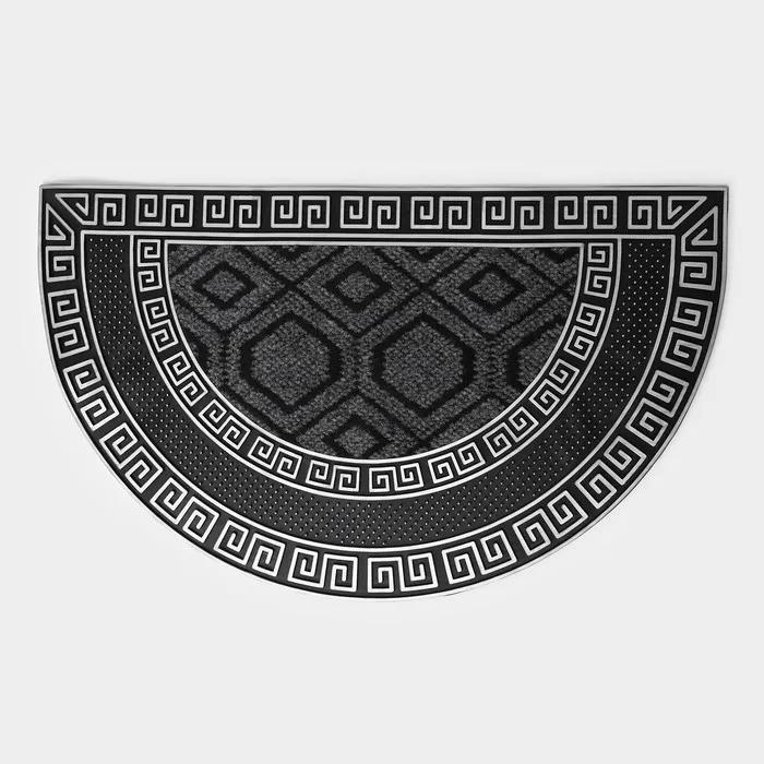 Коврик придверный полукруглый Доляна «Меандр», 44×74 см, серебряный — Характеристики