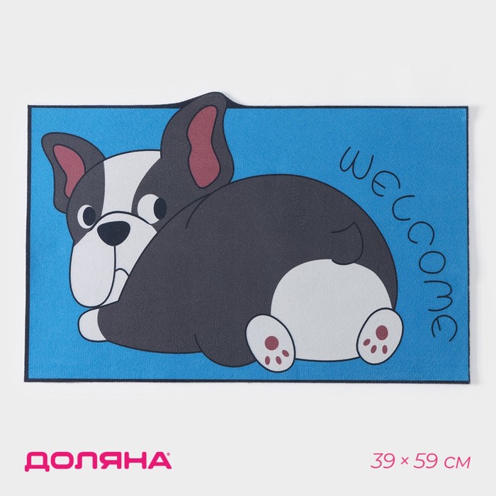 Коврик влаговпитывающий придверный «Доляна. Бульдог», без окантовки, 38×57 см, синий