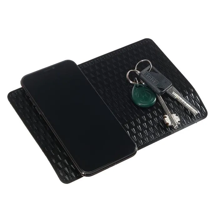 Противоскользящий коврик изготовлен из надежного материала. На коврике можно расположить мобильный телефон, очки, карточку и другие предметы, которые могут упасть во время движения автомобиля.