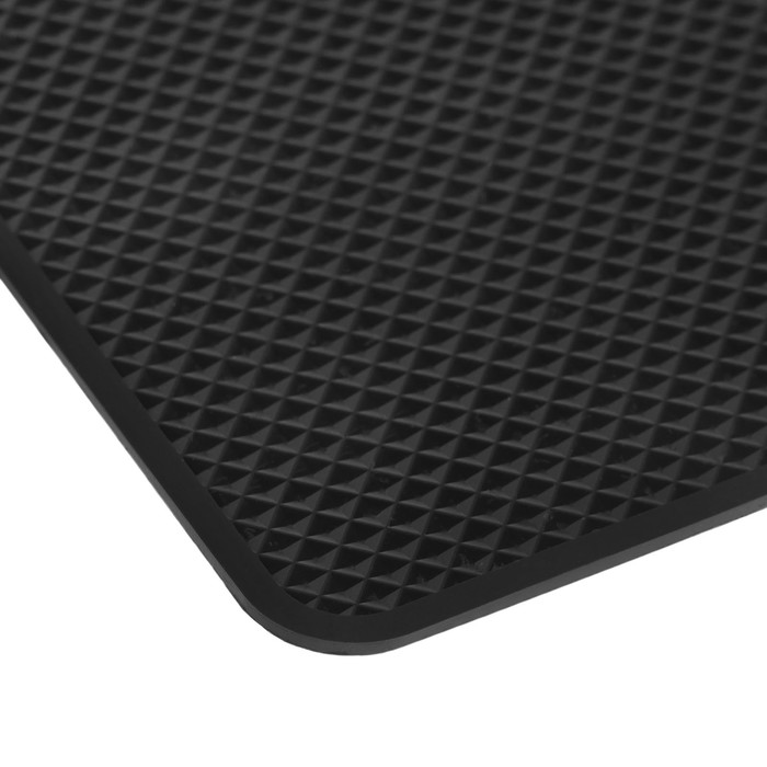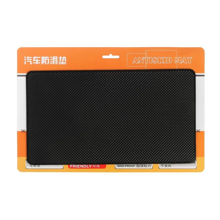 Противоскользящий коврик на приборную панель выполнен из легко моющегося и мягкого материала. Изделие плотно держится на любом покрытии приборной панели, а так же защищает её от повреждений. Аксессуар надёжно удерживает предметы при резких манёврах и поворотах.