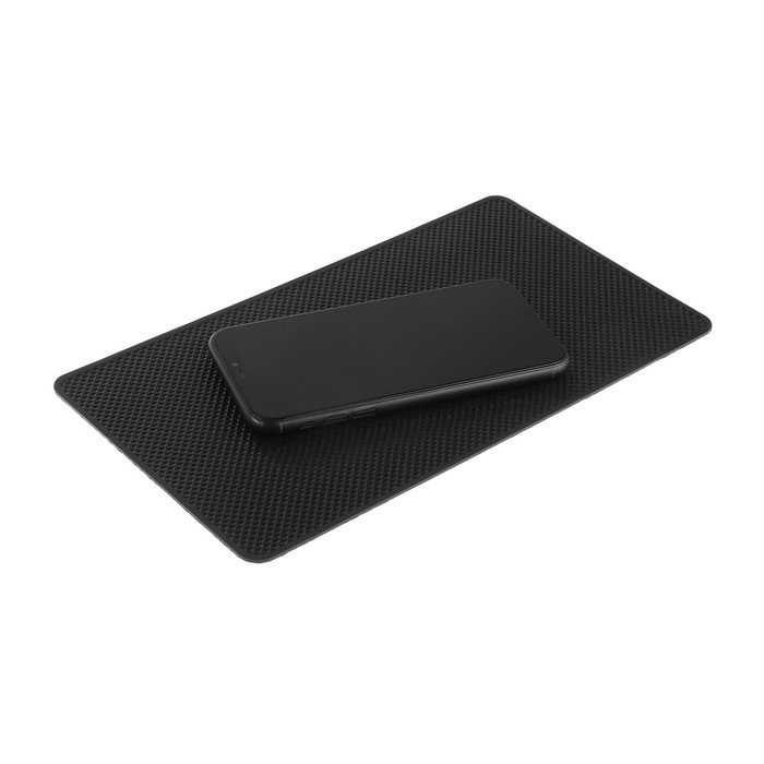 Противоскользящий коврик на приборную панель выполнен из легко моющегося и мягкого материала. Изделие плотно держится на любом покрытии приборной панели, а так же защищает её от повреждений. Аксессуар надёжно удерживает предметы при резких манёврах и поворотах.