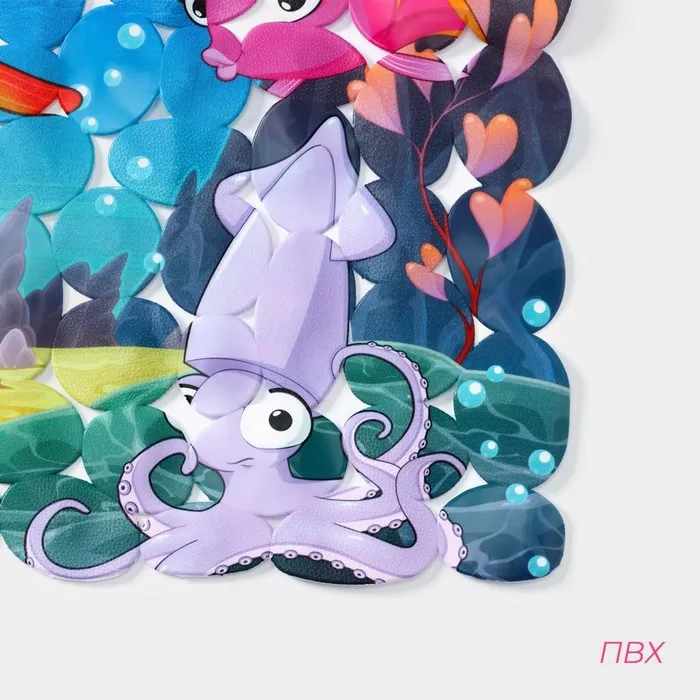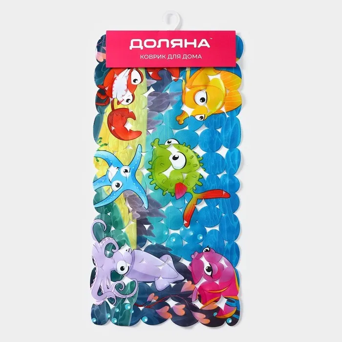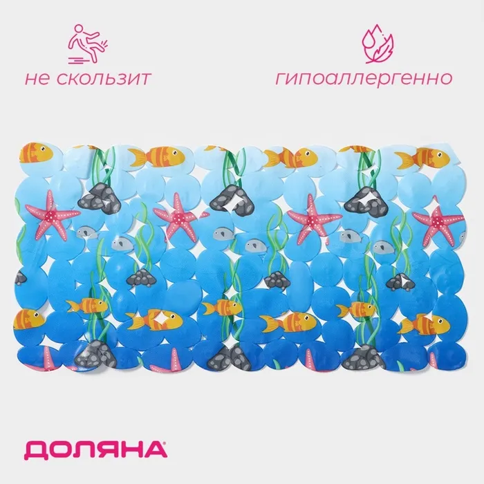 Коврик противоскользящий в ванну на присосках Доляна «Яркие рыбы», 35×68 см — Характеристики