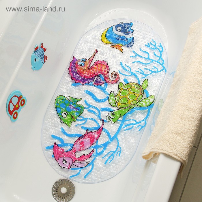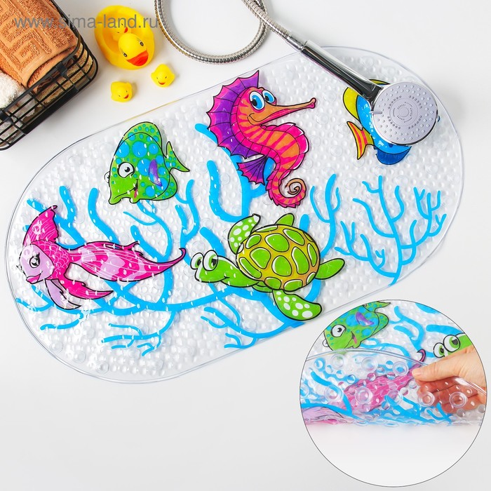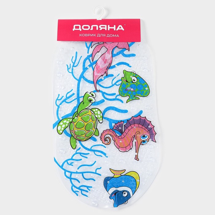 Коврик противоскользящий в ванну на присосках Доляна «Морские жители», 36×68 см — Характеристики