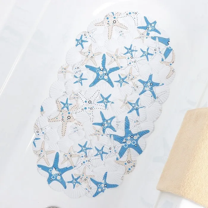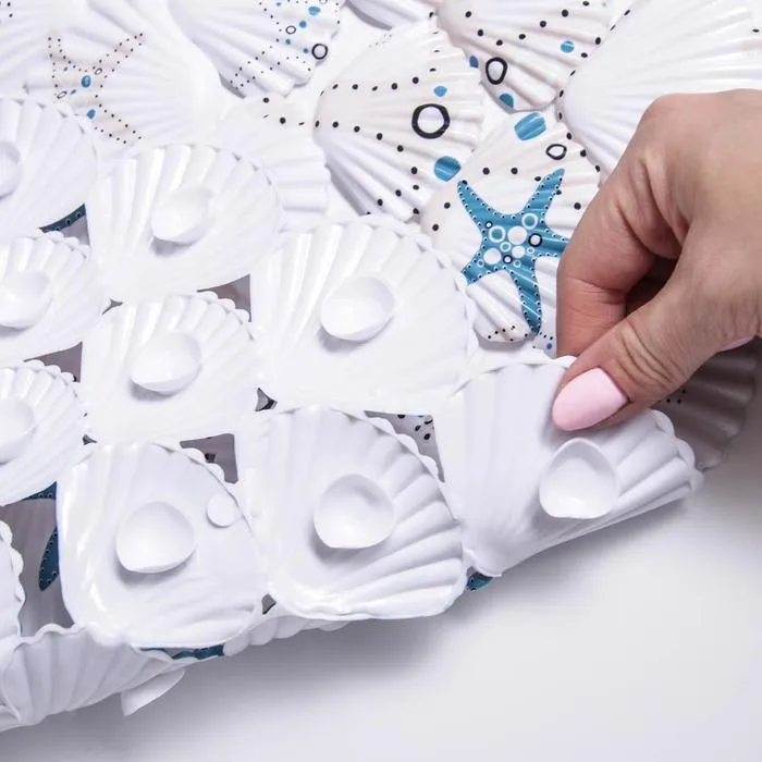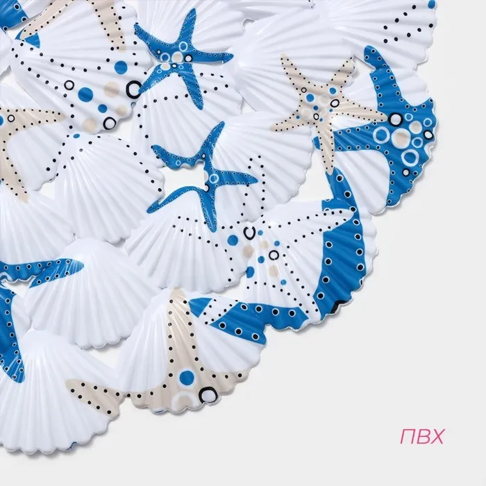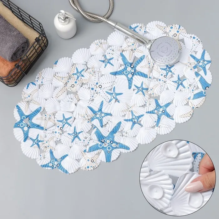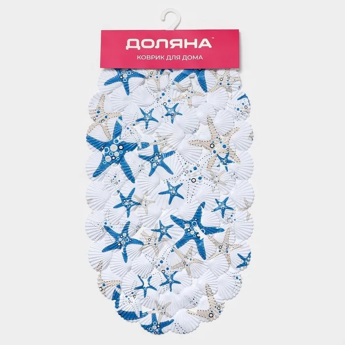 Коврик противоскользящий в ванну на присосках Доляна «Морские звёзды», 37.5×68 см, белый — Характеристики