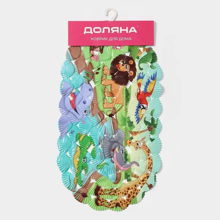 Коврик противоскользящий в ванну на присосках Доляна «Звери Африки», 36×67 см — Характеристики