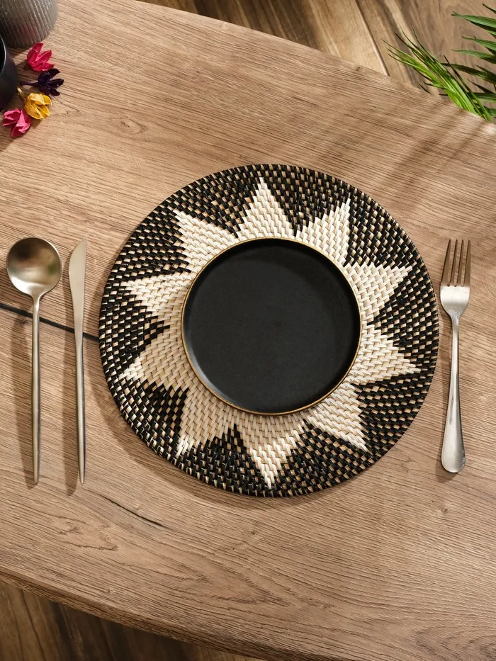 Коврик сервировочный плетеный круглый ротанг, 30х30х0,5 см, чёрно-белый — Характеристики