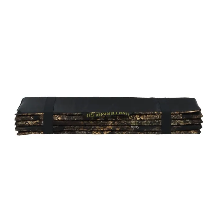 Верхний слой коврика "Сибтермо" изготовлен из материала хлопок + полиэстер, нижний слой полиэстер с водоотталкивающей пропиткой. Внутренний наполнитель теплоизолирующий материал толщиной 10мм. Коврик, используется для теплоизоляции между телом лежащего человека и почвой, а также для повышения комфорта туриста. Компактен в транспортном положении. Основное качество этого коврика в том, что он складывается, а не скручивается в трубочку. За счет этого достигается минимальный объем при перевозке. Современный, лёгкий и компактный.
