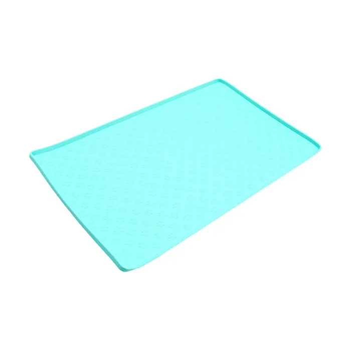 Влагостойкий коврик под миску – это незаменимый аксессуар, позволяющий поддерживать место кормления вашего любимца в полном порядке и чистоте. Подойдет для любого домашнего питомца: кошек и котов, собак мелких, средних и крупных пород, минипигов, декоративных кроликов.Коврик изготовлен из качественного, плотного и безопасного силикона.Такой коврик защитит напольные покрытия вашего дома от случайно разлитой воды, так как мисочка вашего питомца больше не будет скользить по полу, благодаря антискользящему эффекту.По краям коврик имеет выступающие бортики, которые будут удерживать воду и остатки еды на коврике. Вам больше не придется наводить уборку после каждого приема пищи.Такой коврик достаточно протереть влажной салфеткой, чтобы удалить образовавшиеся загрязнения.Размер коврика позволяет разместить на себе две и более мисочки.Устойчив к зубам и когтям, поэтому прослужит вам долгий период времени.Защитный коврик под миску сохранит в чистоте ваш пол и станет отличным подарком как для хозяина, так и для любимого питомца.