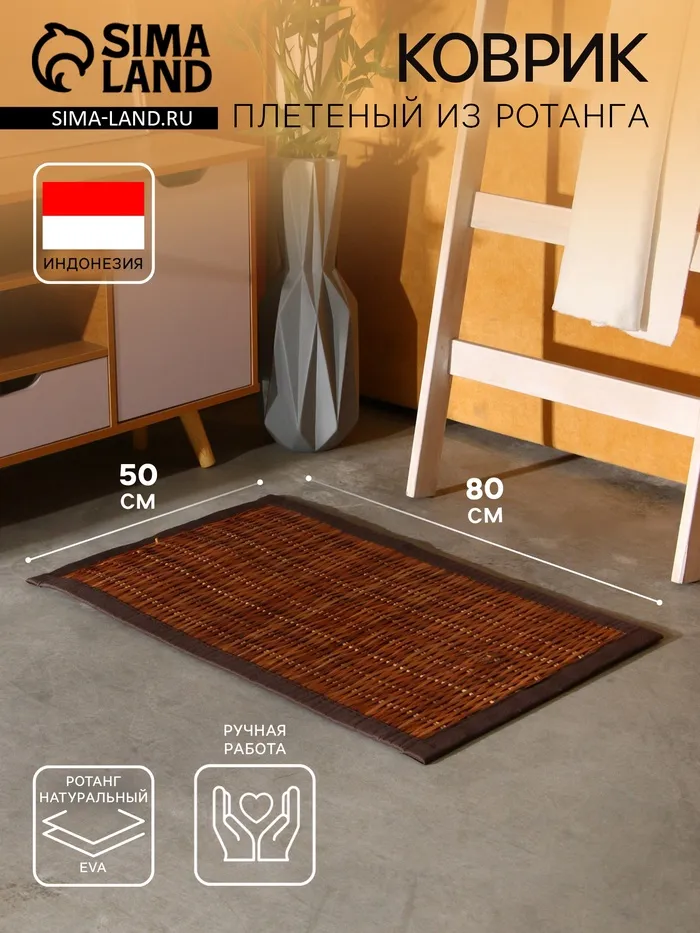 Коврик SL Home Cotton, 60×90 см, чёрный, молочный, хлопок 50% — Характеристики