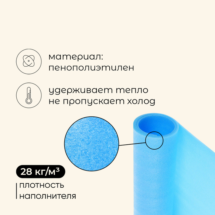 Материал изделия (пенополиэтилен) обладает водоотталкивающими свойствами и хорошей прочностью, а значит, будет радовать вас не один сезон.