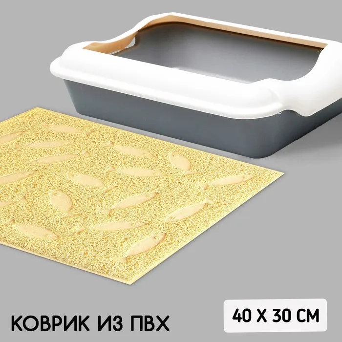 Коврик универсальный под миску и лоток «Рыбки», 30х40 см, бежевый — Характеристики