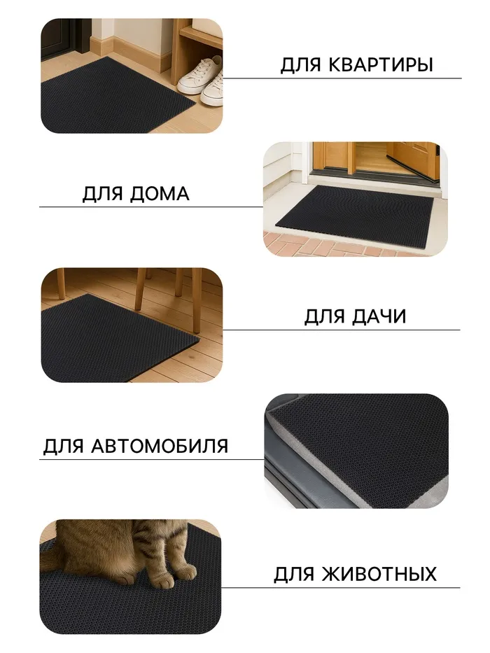 Коврик универсальный придверный, 50×67 см, EVA, ячейка соты, чёрный — Характеристики