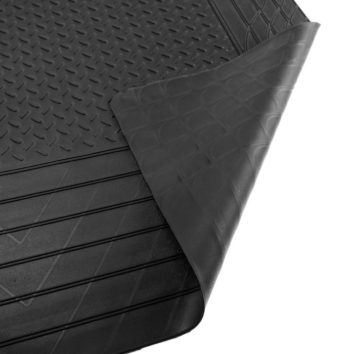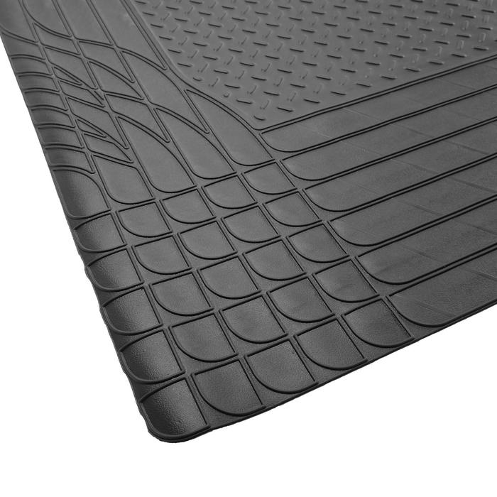 Универсальный коврик Luazon имеет нанесённый рельеф, по которому можно вырезать точную форму в соответствии с размерами багажного отделения вашего автомобиля. Ребристая поверхность обеспечивает его фиксацию и удерживает вещи на местах во время поездки. Прочный и долговечный, он станет верным решением, если вы хотите уберечь обивку багажника от грязи и различных повреждений.