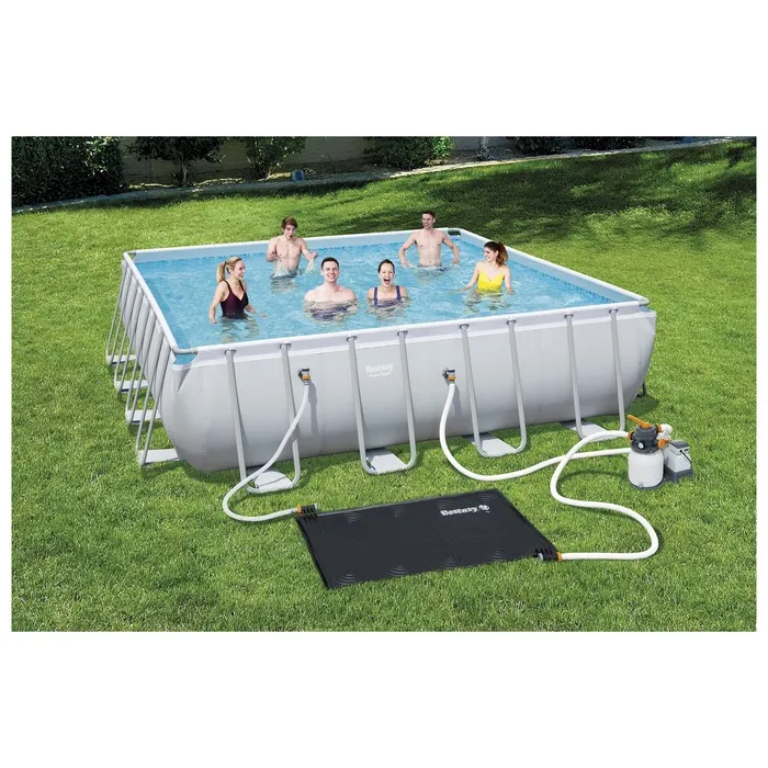 Коврик предназначен для нагрева воды в уличном бассейне. Коврик подключается к фильтр-насосу и пропускает воду через каналы, в бассейн поступает уже нагретая вода.