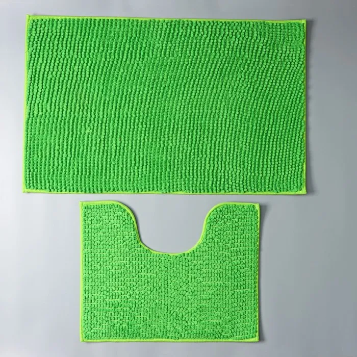 Коврики для ванной и туалета Доляна «Букли», 2 шт., 40×50 см, 50×80 см, зелёные — Характеристики
