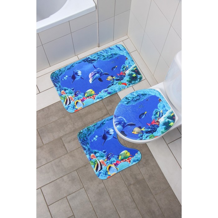 Коврики для ванной и туалета Доляна «Дельфин», 3 шт., 35×39, 40×50, 45×75 см — Характеристики