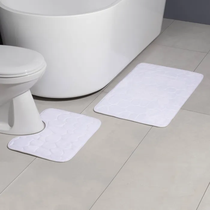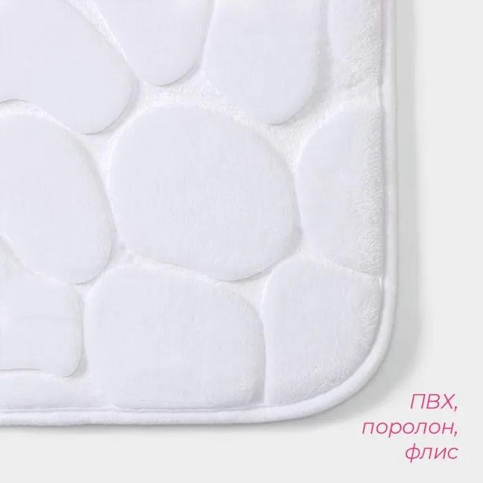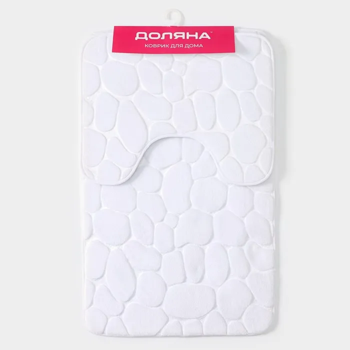Коврики для ванной и туалета Доляна «Галька», 2 шт., 39×50, 50×80 см, белые — Характеристики