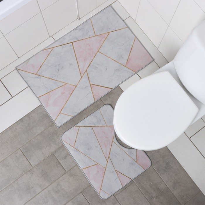 Коврики для ванной и туалета Доляна «Гео», 2 шт: 50×80 см, 40×50 см, цвет розовый — Характеристики