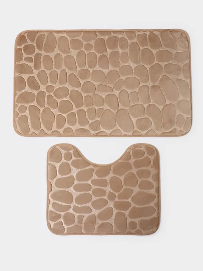 Коврики для ванной и туалета Доляна «Камни», 2 шт., 40×50, 50×80 см, бежевые — Характеристики