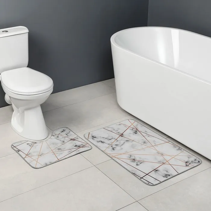 Коврики для ванной и туалета Доляна «Мрамор», 2 шт., 50×80 см, 40×50 см — Характеристики
