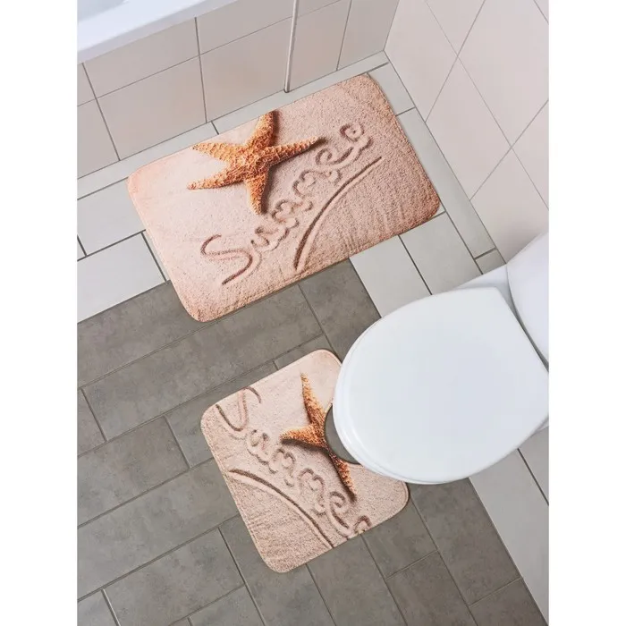 Коврики для ванной и туалета Доляна «На пляже», 2 шт: 40×45, 45×75 см — Характеристики