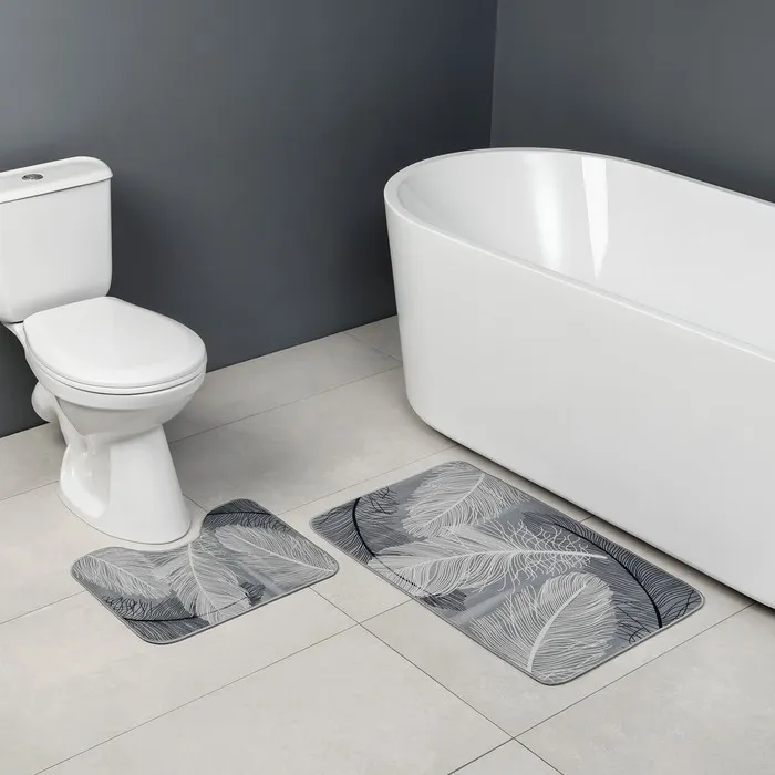 Коврики для ванной и туалета Доляна «Пёрышки», 2 шт., 50×80 см, 40×50 см, серые — Характеристики