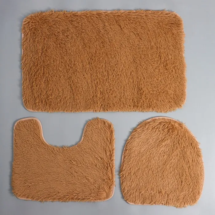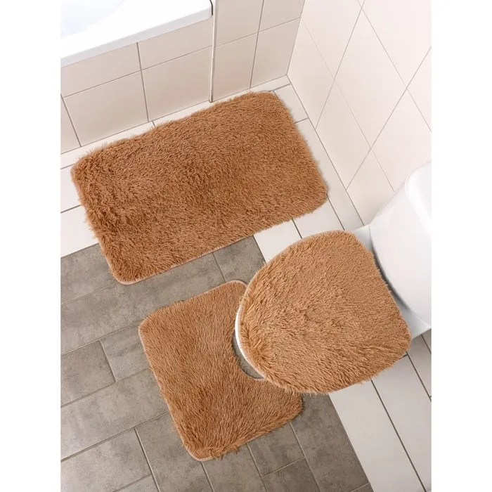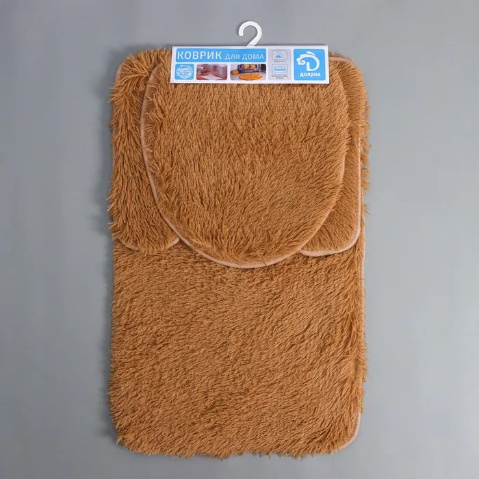 Коврики для ванной и туалета Доляна «Плюшевый», 3 шт.: 34×40, 40×50, 50×80 см, бежевые — Характеристики