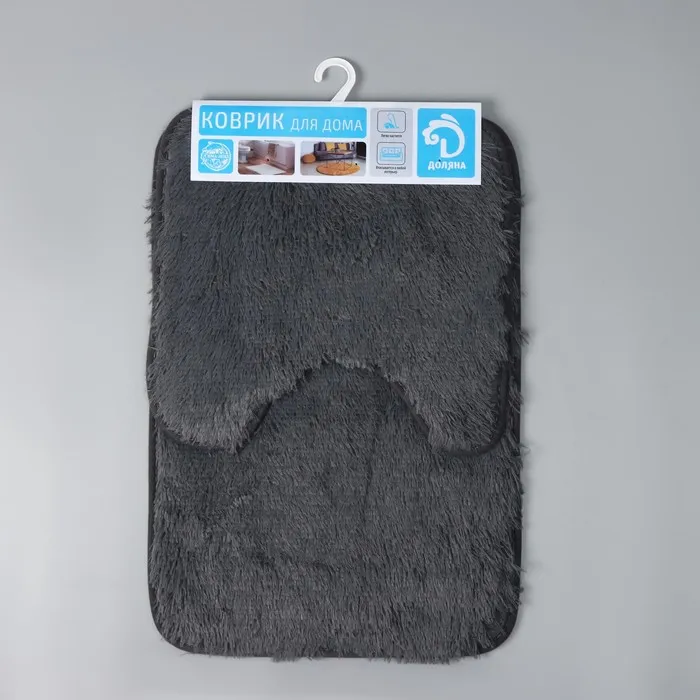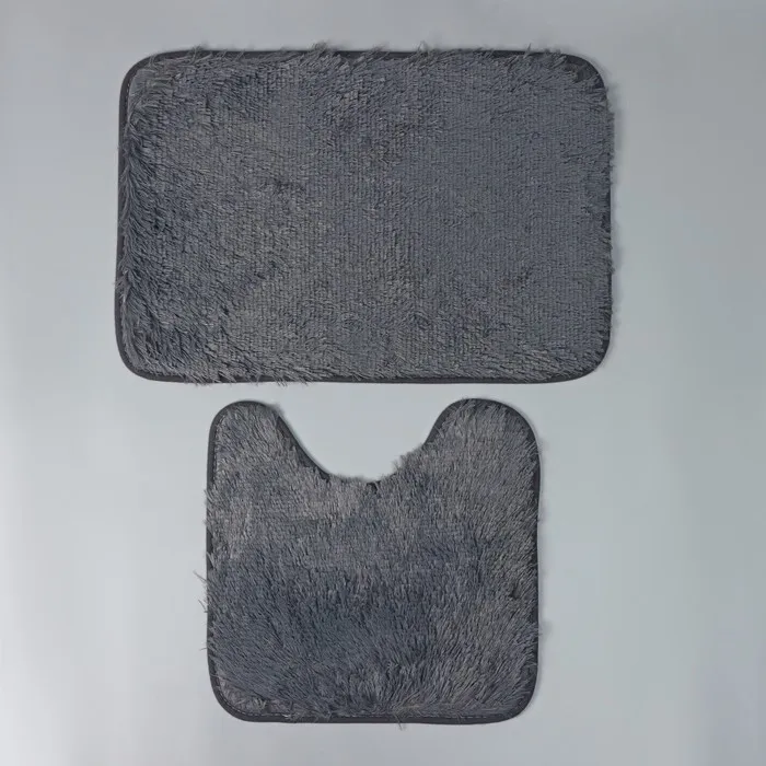 Коврики для ванной и туалета Доляна «Пушистик», 2 шт., 38×40 см, 40×60 см, серые — Характеристики