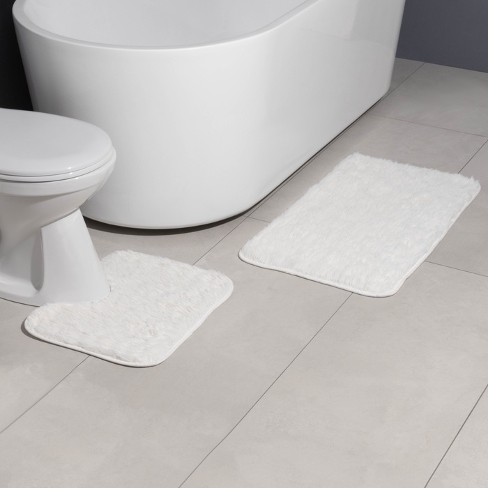 Коврики для ванной и туалета Доляна «Пушистик», 2 шт: 40×50 см, 50×80 см, цвет белый — Характеристики