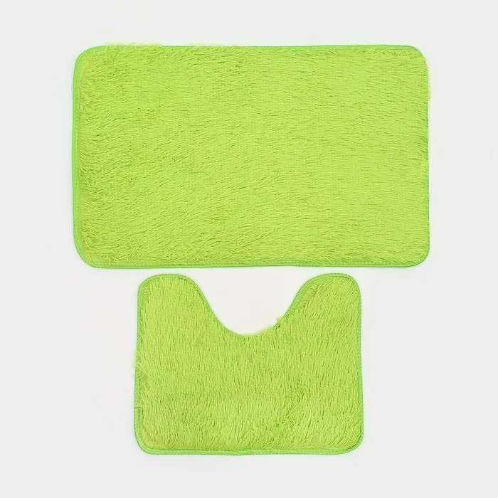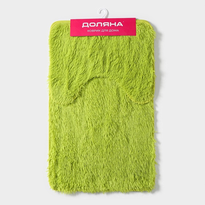 Коврики для ванной и туалета Доляна «Пушистик», 2 шт: 40×50 см, 50×80 см, цвет зелёный — Характеристики