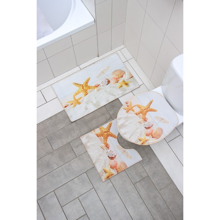 Коврики для ванной и туалета Доляна «Ракушки», 3 шт: 38×46 см, 40×45 см, 45×75 см — Характеристики
