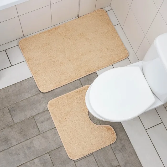 Коврики для ванной и туалета Доляна «Софт», 2 шт., 40×50 см, 50×80 см, бежевые — Характеристики