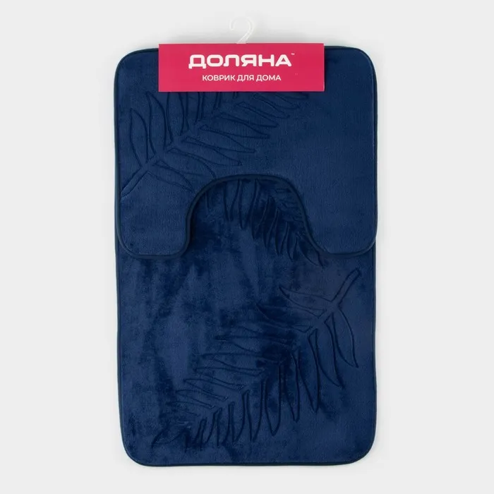 Коврики для ванной и туалета Доляна «Тропики», 2 шт., 40×50, 50×80 см, синие — Характеристики