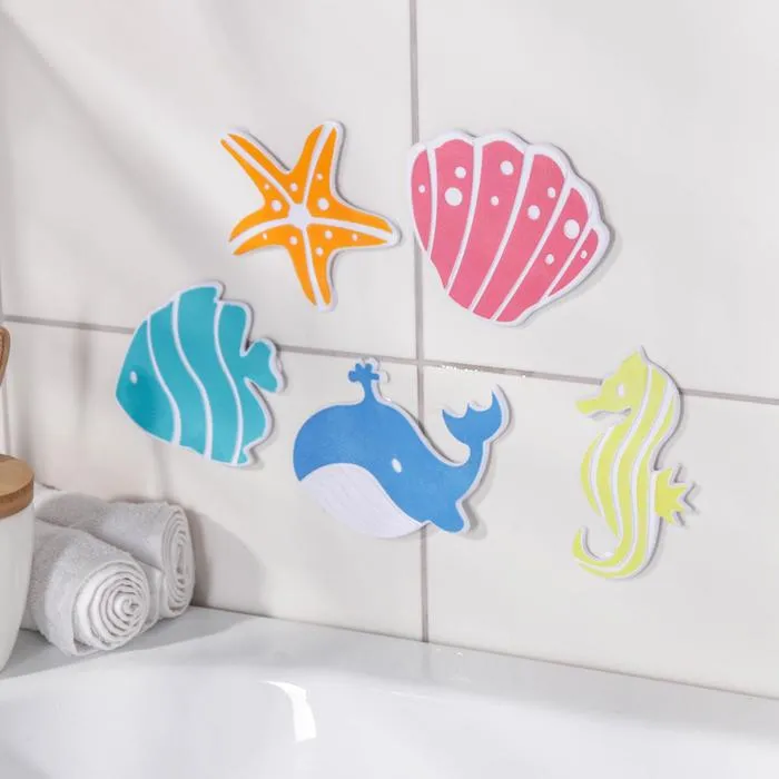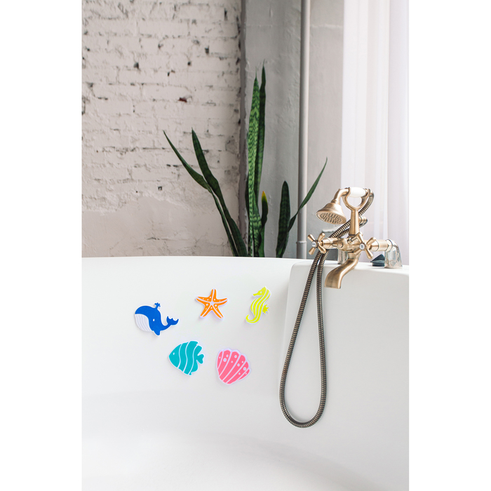 Коврики для ванной на присосках Доляна «Океан», 16×16 см, 5 шт, цвет МИКС — Характеристики