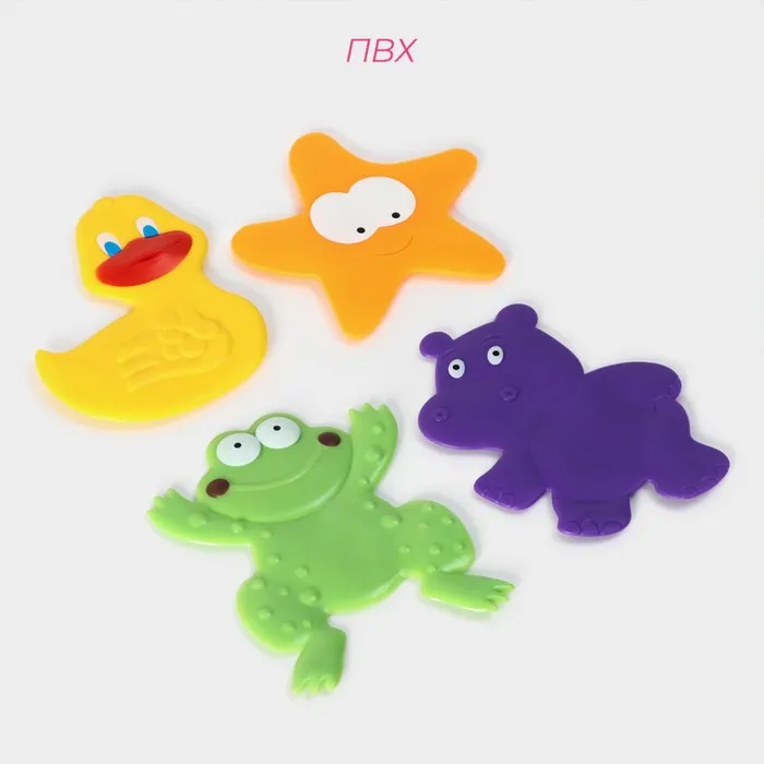 Коврики для ванной на присосках Доляна «Зоопарк», 4 шт, детские, 11×14 см — Характеристики